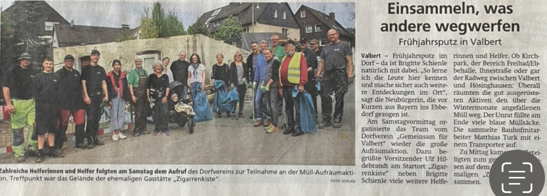 Auch in diesem Jahr gab es wieder unsere Aufräumaktion in Valbert und wurde, dank zahlreicher Helfer, zum vollen Erfolg.