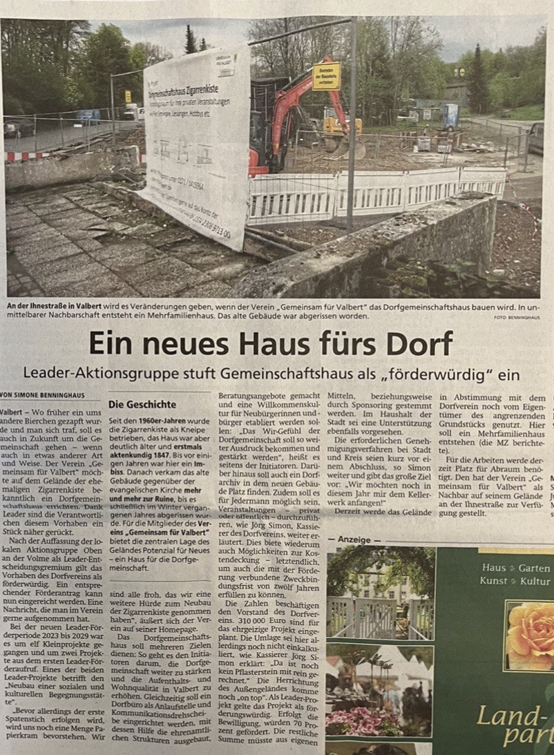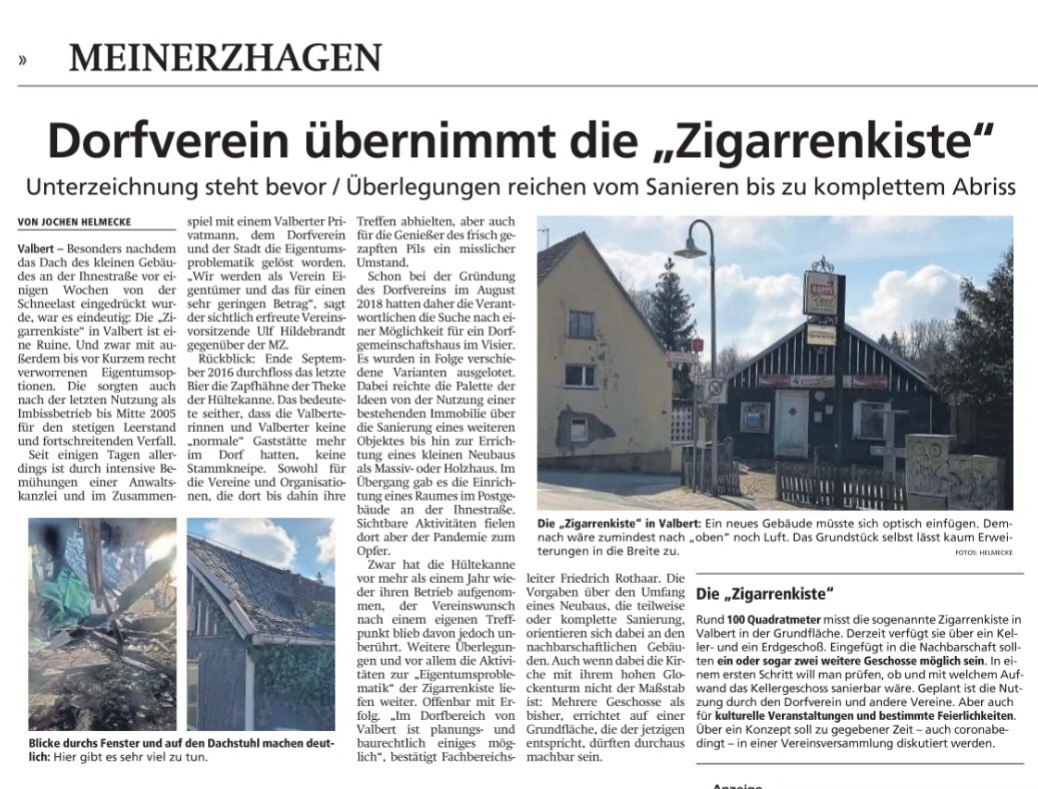 Weil die Zigarrenkiste nun etwas an Fahrt aufgenommen hat, lädt der Dorfverein zu einer Infoveranstaltung in die evangelische Kirche in Valbert ein.