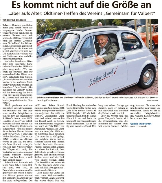 Das Oldtimertreffen 2020 in Valbert war ein voller Erfolg.