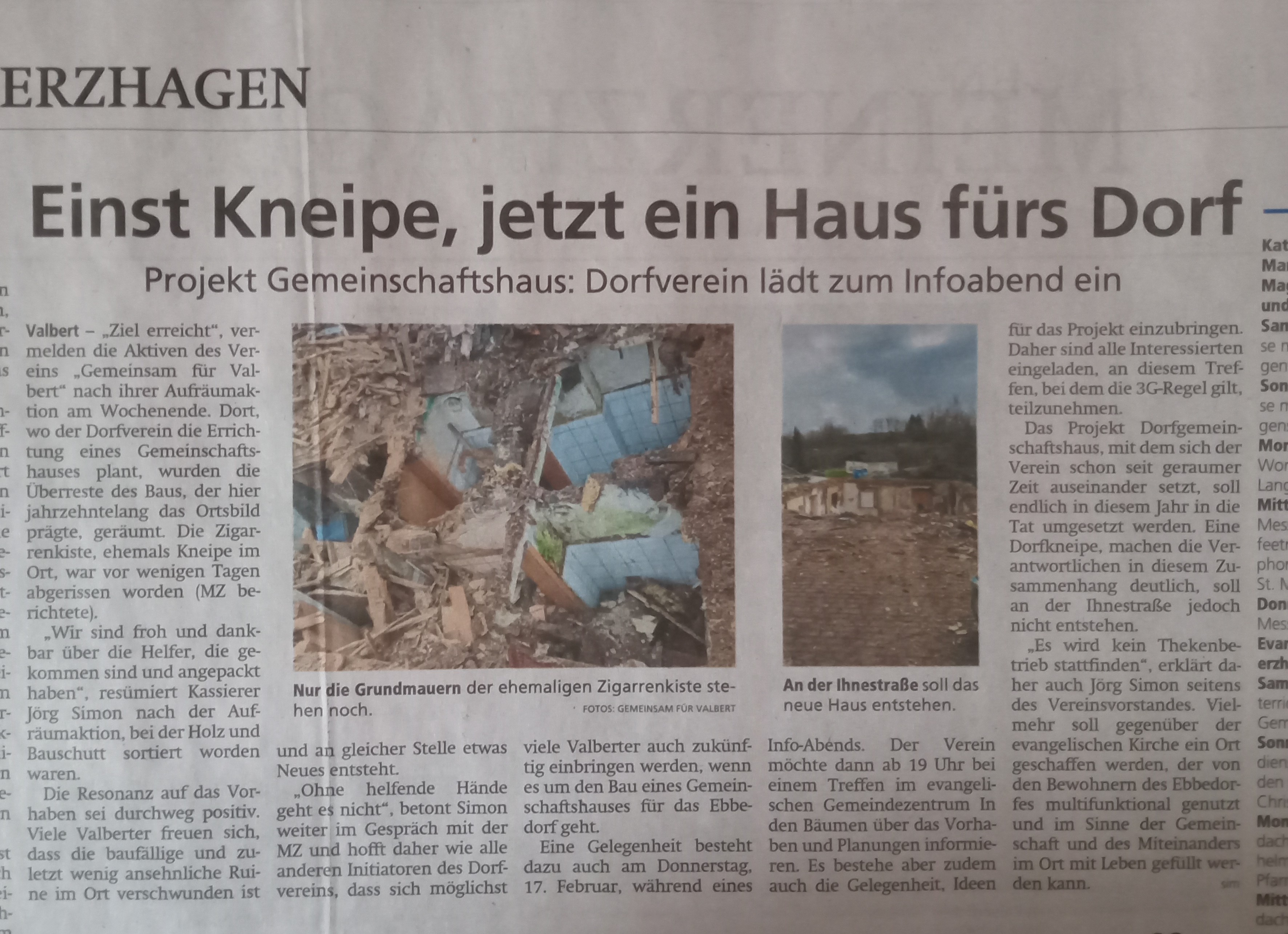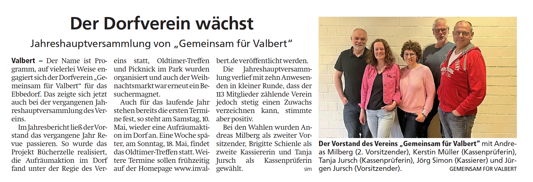 Dorfverein "Gemeinsam für Valbert" informiert übers neue Vereinsjahr